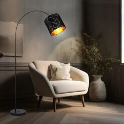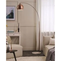 Lampadaire Arquer Arc Lampe De Salon Abat-jour Rose Doré Pied Marbre Noir Teamson Home VN-L00011-EU