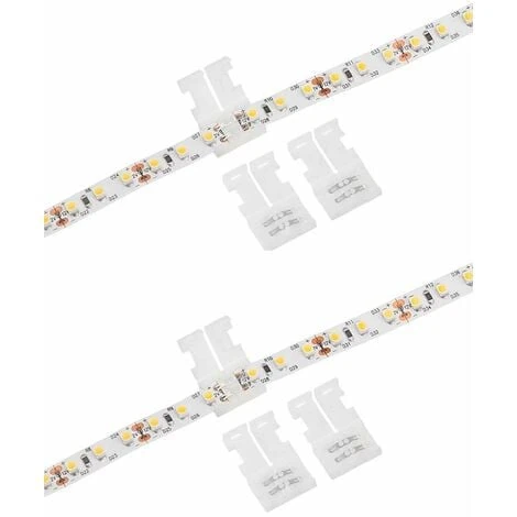 4x Connecteur Rapide Double Droit à 2 Broches Pour Ruban LED Blanc 12V 24V Clip Fixation Raccord Accessoire Finition Eclairage Placard Dressing, Pour Ruban 8mm