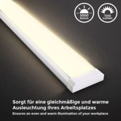 B.K.Licht I Lampe d’agencement à LED 10 W I 1100 lumens I Longueur : 57,5 cm I 3.000K couleur de lumière blanc chaud I IP20 I Lampe d’agencement I Lampe de cuisine I Lampe d’atelier