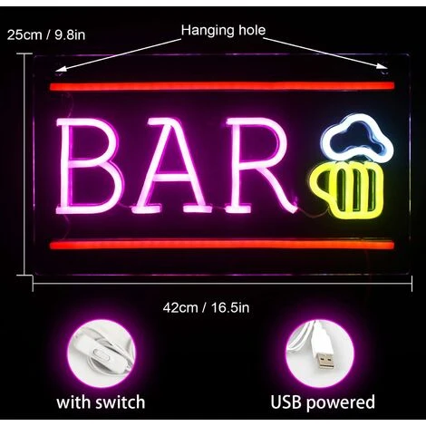 Bière Enseigne Au Néon BAR Lettre Neon Sign 3D Art LED Néon Applique décorative pour Bar Party Discothèque Restaurant Célébration.【Largement utilisée et cadeau parfait】 : le néon 3D Art BAR est une décoration attrayante pour la maison, le bar, le club, la fête, la salle de bain, le jardin extérieur, les murs de la chambre, les fenêtres, les magasins, les appartements, les restaurants. Une enseigne au néon peut être un excellent cadeau pour une fête, Noël, un anniversaire, un mariage, des vacances ou un cadeau chéri pour les familles, les amis, les collègues.Remarque: les données sont toutes des mesures manuelles, s’il vous plaît permettez une erreur de 1-3cm;en raison de la différence de lumière et d’affichage, il y aurait une certaine différence de couleur, veuillez vous référer à l’objet réel reçu.