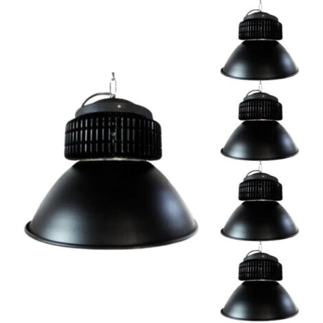 Éclairez de manière efficace votre local commercial à l’aide de ce lot de 5 cloches Led industrielles au meilleur prix! En plus de vous permettre de faire des économies, ces cloches industrielles sont à la fois esthétiques et performantes.Caractéristiques de la cloche Led industrielleUne puissance et une luminosité efficacesLa cloche Led possède une puissance énergétique de 100W, parfaite pour éclairer de grands espaces. Elle diffuse un flux lumineux de 9000 lumens dont la température de couleur d’éclairage est, soit blanc neutre (4500k), soit blanc froid (6000k). Ce luminaire est doté d’un ventilateur intégré afin de dissiper la chaleur émise.Un éclairage bénéfique pour tousEn choisissant la cloche Led, vous faites le choix d’un luminaire durable, qui émet peu de chaleur et qui exerce d’une manière dix fois plus efficace que ces congénères halogènes. Aucun produit nocif n’est dégagé par le luminaire issu de la technologie LED, au contraire, il peut être recyclé en fin de vie.
