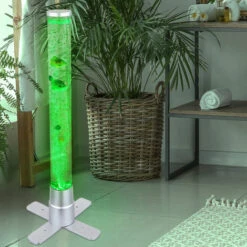 Ce grand lampadaire de la série Mendoza impressionne par son design unique. Un récipient cylindrique d’une hauteur de 61 cm comprenant des poissons décoratifs qui montent et descendent en raison de la montée des bulles d’air dépasse d’un pilier. Avec une source de lumière LED RVB dans la base, l’eau brille de différentes couleurs et crée un grand effet. Une source lumineuse LED RVB de haute qualité et à économie d’énergie est installée en permanence dans la lumière.