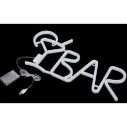 Le néon est alimenté par USB ou par 3 piles AA (piles non incluses) et peut être rechargé à partir d’une banque d’énergie ou d’une prise de courant dotée d’un port USB.