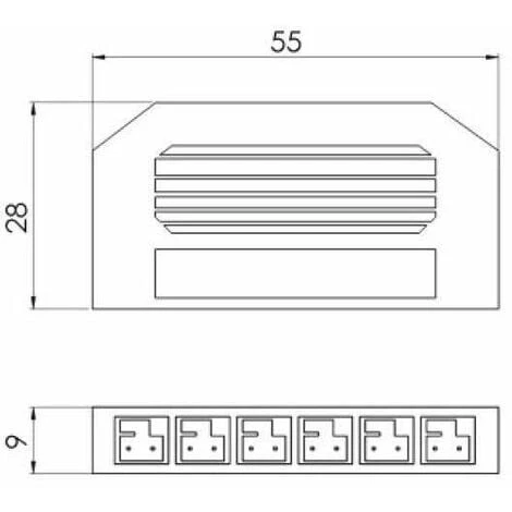 Distributeur LED 6 voies ; Tension de sortie = 12/24V ; Dimensions = 55 x 28mm ; Jusqu’à 30W par sortie, maximum 100W au total