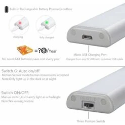 - Emballage: 3 * éclairage d’armoire LED + 3 * bande métallique avec ruban adhésif double face + 1 * description + câble de chargement USB