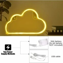 [ÉCLAIREZ VOTRE VIE] Les enseignes au néon pourraient vous apporter plus de luminosité et sont le meilleur choix pour ajouter à votre chambre et votre pièce. La forme spécifique du nuage et la couleur douce créent une atmosphère d’éclairage chaleureuse et romantique dans votre maison. Cadeau parfait pour la décoration esthétique des chambres d’enfants et de filles. [ECO-FRIENDLY & HAUTEMENT SÉCURISÉ] Les néons sont fabriqués à partir de plastique de qualité supérieure et d’un tube néon flexible à LED sûr, extrêmement sûr et robuste. La lampe est assez légère. Les enseignes au néon Cloud s’utilisent à basse tension et économisent de l’énergie. Les néons à LED ne seront pas surchauffés même si la lumière continue de fonctionner pendant une longue période. Pour ne jamais vous soucier du risque de surchauffe ou de bris de verre. [USB & FONCTIONNEMENT SUR BATTERIE + INSTALLATION FACILE] Enseigne au néon à LED conçue pour avoir deux méthodes d’alimentation pratiques: câble USB ou pile 3AA (non incluse). Les enseignes lumineuses au néon ont un trou derrière la lampe, vous pouvez accrocher la lumière au mur ou mettre la lampe où vous voulez. Rapide et facile à installer. [LARGE APPLICATION + CADEAU PARFAIT] Les lumières LED sont largement utilisées dans les mariages, les anniversaires, la Saint-Valentin, Noël, les enterrements de vie de jeune fille, les banquets de mariage, etc. Les néons Cloud sont le choix parfait pour la décoration murale, la chambre à coucher et la décoration esthétique de la pièce.