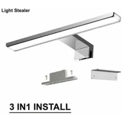 La source lumineuse de la lampe miroir est constituée d’un film SMD 2835 x 98, qui peut émettre une lumière de 620 lm. Super lumineux et économe en énergie. Le dessus de la lampe miroir est en acier inoxydable durable et anti-oxydation. Parce qu’il y a une unité dans la partie de connexion, nous choisissons le plastique (PVC) comme matériau pour des raisons de sécurité, car le PVC est très résistant et isolant.