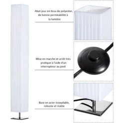 HOMCOM Lampe Lampadaire Colonne Sur Pied Moderne Lumière Tamisée 40 W 14L X 14l X 120H Cm Inox Blanc