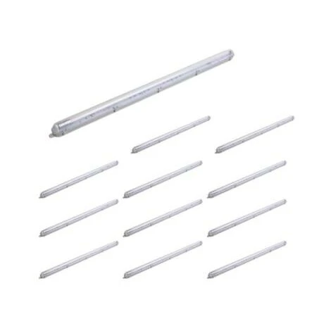 La LED appliquée à notre pack de 12 kits de réglettes étanches + tubes T8 de 120 cm pour un éclairage performant et économique