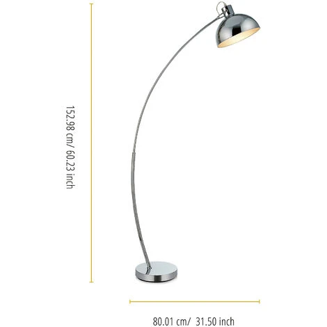 – DIMENSIONS : Ce lampadaire chromé en forme d’arc mesure L80 x l24.9 x H153 cm.