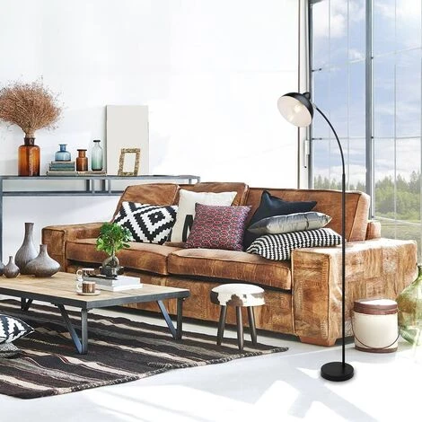Lampadaire Daron Noir E27 1x Max 40W B: 48cm H: 158cm Ø20cm avec interrupteur à pied