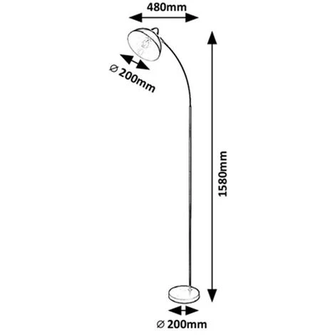 Dimensions en mm: Largeur: 480, Hauteur: 1580, Diamètre : 200