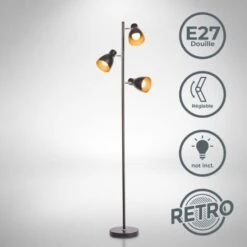 Cette lampe à pied très qualitative avec ses 3 spots orientables et pivotables en métal noir mat avec intérieur doré va vous séduire par son charmant design vintage rétro des années 50.