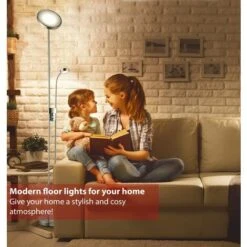 B.K.Licht lampadaire LED dimmable, module LED 21W, luminosité variable, avec liseuse orientable 3,5W, luminaire de salon, lampe de lecture, 230V, IP20, hauteur 1800mm
