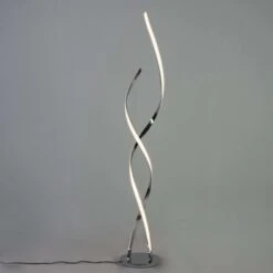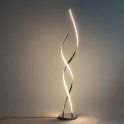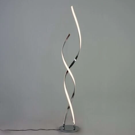 Grande lampe LED design Cascada. Ce luminaire moderne se compose de 2 bras ondulés en métal chromé s’entrecroisant avec élégance. De 126 cm de hauteur, cette splendide lampe futuriste créera une ambiance design au sein de votre intérieur. Véritable élément de décoration, elle fournit un éclairage doux, parfait pour la lecture ou le repos et consomme peu d’énergie grâce à ses LED intégrées. Descriptif technique du luminaire : Culot de l’ampoule : LED intégrée | Ampoule : 24W | Indice de protection : IP20 | Tension : 220/230V 50/60Hz | Poids du luminaire : 1,8 kg | Poids du colis : 3,52 kg | Couleur du produit : Argenté / Chromé | Matière : Métal et aluminium | Longueur : | Largeur : | Hauteur : 126 cm | Diamètre : 22 cm | Profondeur :