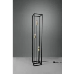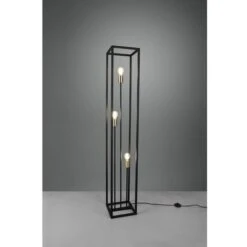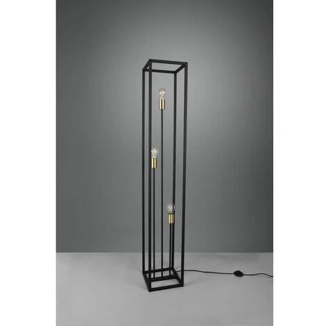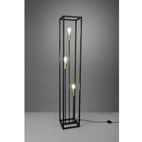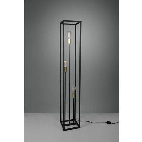 Le lampadaire VITO par Trio Lighting a une structure cage en métal noir mat, interrupteur au pied.