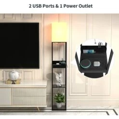 - 【2 ports USB de charge et 1 tiroir】Le lampadaires dispose de 2 ports USB de charge, il permet de recharger facilement vos appareils mobiles, y compris les iPhones et les appareils Android en même temps. Cela réduira l’encombrement des fils de charge dans votre salon ou votre chambre et améliorera votre commodité .Le lampadaire sur pied salon avec étagères a tiroir, vous permettra de ranger les petits objets, comme les clés, la télécommande , lunettes, etc.