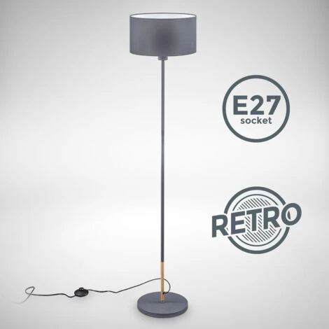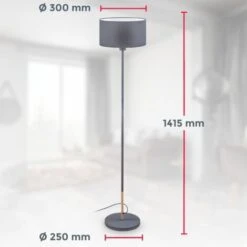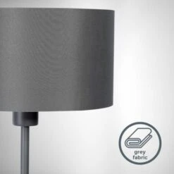 L’abat-jour en tissu du lampadaire pour une ampoule E27 est gris à l’extérieur et blanc à l’intérieur. Il a un diamètre de 30 cm