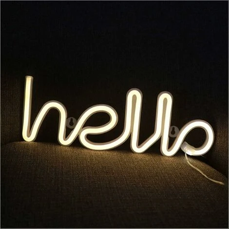 DESIGN UNIQUE: La jolie veilleuse Neon Hello SIGN est une solution merveilleuse pour la décoration de la chambre de votre tout-petit. Belle et moderne lampe LED décorative.Ajoutez de la vigueur à cette table de chevet avec ce décor lumineux LED.Il offre une ambiance lumineuse chaleureuse à votre place. MOYENS OPTIONNELS À PLACER: Il y a un trou derrière la lampe, vous pouvez l’accrocher au mur ou le placer sur la table. CADEAU PARFAIT pour les enfants, les femmes à Noël, nouvel an, anniversaire, fête, performance, occasions spéciales, etc. BATTERIE ET CHARGE USB FONCTIONNÉS: Utilisez 3 piles AA (non incluses) ou avec le câble USB pour l’allumer. TAILLE environ: 13,20 L x 5,12 H x 0,98 P , Longueur du câble USB environ: 9,2 piedsIlluminez votre maison avec Neon HelloCréez une atmosphère chaleureuse et romantique avec ce néon de nuages.Utilisé comme décor quotidien pour la maison, idéal pour les manteaux de cheminée, les baies vitrées, les jardins ou les accessoires photo / décors.Un capteur d’attention et des yeux au sommet de votre mariage, fête, événement spécial, etc.Portable et polyvalentFonctionnant sur batterie, sûr et pratique avec interrupteur ON / OFF ou chargez-le avec le câble USB.Trous de crochet intégrés pour faciliter l’affichage sur un mur ou simplement reposer sur un manteau, une étagère, une table ou une commode.Peut être affiché seul ou combiné avec d’autres pièces pour créer une installation d’éclairage éclectiquespécificationTaille environ 11.61 L x7.28 H x0.78 D , Longueur du câble USB environ: 9.2ftBatterie: 3 piles AA requises (non incluses)Matériel: plastique + LED.Durable et économie d’énergieLa lumière au néon ne produit pas de chaleur après une utilisation prolongée.Extérieur en plastique, robuste mais pas trop lourd.FAQConçu principalement à des fins décoratives. Ne peut être considéré comme un substitut de l’éclairage quotidien.1 x Neon love-sign Light (piles non comprises)ATTENTIONRangez la lampe dans un endroit frais et sec et retirez les piles si vous prévoyez de ne pas utiliser le produit pendant une longue période.Veuillez manipuler ce produit avec soin pour éviter tout dommage.Si vous êtes suspendu, assurez-vous que le crochet dispose d’un espace supplémentaire pour faciliter l’utilisation du commutateur.