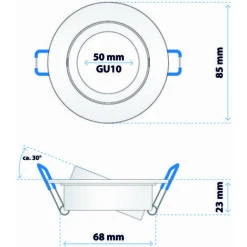 Ce support spot avec douille GU10 inclus vous permettra d’encastrer votre lampe dans le faux plafond et de l’orienter jusqu’à 30 degrés.
