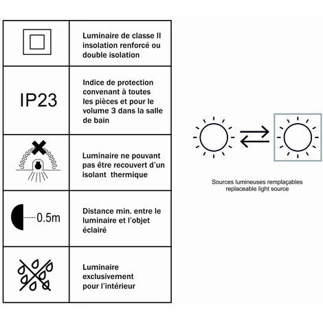 - Lampe supportée : LED, fluocompacte, halogène