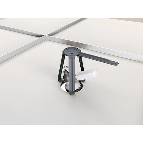 Description du produit : SpotClip-III s’adaptera à toutes les applications standard avec un matériau d’isolation solide. Il est livré à plat avec des pieds flexibles. Ils peuvent être verrouillés en quelques secondes. La hauteur de ce dispositif de montage dépend du diamètre du trou de fixation. SpotClip-III convient aux downlights LED et halogènes avec un diamètre de trou de fixation de 62 mm à 120 mm. La hauteur maximale du produit est de 130 mm en fonction du diamètre du trou de fixation. Principales caractéristiques :