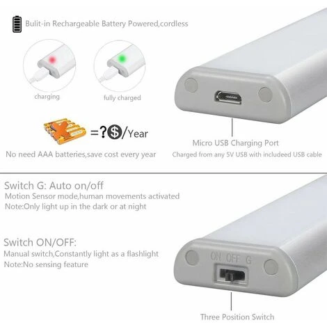 【Longue durée de travail et rechargeable】: Batterie rechargeable intégrée (haute capacité de 500 mAh), pas besoin de pile AAA, économie de coûts. Chargé par n’importe quel appareil USB 5V tel qu’un adaptateur USB, portable, adaptateur USB