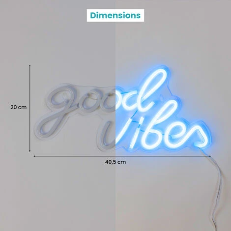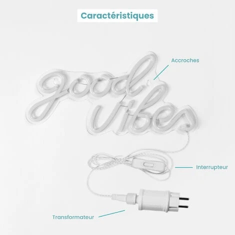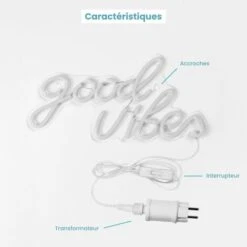 Contenu du colis : 1x lampe néon good vibes, 1x adaptateur secteur.