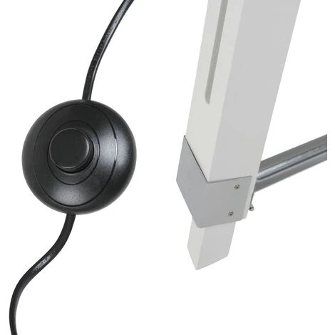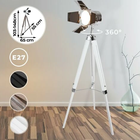 Avec son design qui rappelle les équipes professionnelles de cinéma ou de studio photo, ce lampadaire ajoute une touche unique à votre maison. La hauteur du trépied en bois est réglable. L’abat-jour est muni de 4 plaques en métal chromé et il est rotatif à 360°, alors la lumière peut être ajustée à votre goût. La combinaison du métal froid et du bois chaud fait de ce lampadaire un élément de décoration pour votre maison. Informations techniques: Dimensions (l/P): env. 65/55 cm Hauteur réglable: 103-148 cm Diamètre de l’abat-jour Ø: env. 15/20 cm Poids: env. 3 kg Angle de rotation: 360° Longueur du câble: env. 3,6 m Classe d’efficacité énergétique: A++, A+, A, B, C, D, E Douille: E27 Ampoule: max. 60 W (non incluse dans la livraison) Tension nominale: env. 220-240 V, 50 Hz Degré de protection: IP 20 Classe d’isolation: II Matériaux de l’abat-jour: acier chromé, verre, synthétique (PET) Matériaux du trépied: bois, acier chromé Couleur de l’abat-jour: chromé Couleur du trépied: blanc brillant étendue de livraison: 1 x Lampadaire avec trépied STLT01, en kit pour un montage à faire soi-même 1 x Notice de montage multilingue (EN/DE/FR/ES/IT) Remarque: les ampoules et la décoration ne sont pas incluses dans la livraison. La livraison de nos produits aux îles n’est pas possible.