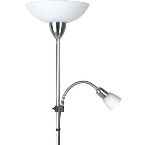 Abat-jours en verre mat poli blanc. La base est en métal brossé couleur nickel. Le bras supplémentaire est flexible et ajustable et permet, par exemple, un éclairage optimale pour la lecture. La lampe est dotée d’un interrupteur On/Off filaire pratique.