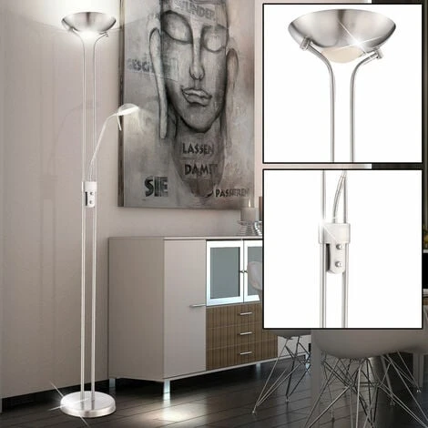 Deux lampes YLED de haute qualité à économie d’énergie sont incluses dans la livraison. Détails lampe • type de lampe : lampadaire• matériau : nickel mat• couleur : argent</ div>• dimmable• spot de lecture mobile• longueur de c&;ble 1,8 m</ div>• Diamètre x hauteur en cm : 25,5 x 180 • prises : 2x LED• lampes incluses : oui• power uplight : 1x 16 watts• power spot de lecture : 1x 4,5 watts• Flux lumineux plafonnier wash : 1x 1440 lumen• flux lumineux spot de lecture : 1x 360 lumen• couleur de la lumière : blanc chaud• tension : 18.7V