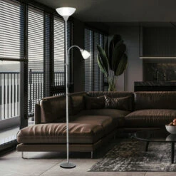 Ce lampadaire simple au design simple crée une atmosphère lumineuse harmonieuse dans votre salon. La lampe est équipée d’un bras de lecture, qui est fixé au cadre de l’uplight à l’aide d’un joint flexo. Le bras de lecture peut être facilement allumé et éteint à l’aide d’un interrupteur à cordon et le lampadaire à l’aide d’un interrupteur à pied. Le design simple et clair du sol la lampe permet de l’utiliser peut être intégrée de manière transparente dans n’importe quelle pièce. A l’aide de la télécommande fournie, réglez la source lumineuse RVB dans différentes couleurs et assurez ainsi un éclairage d’ambiance. Par rapport aux éclairages normaux, projecteurs LED uniquement consomment une quantité minimale d’électricité et sont encore plus faibles que les lampes à économie d’énergie. Cela protège l’environnement et votre portefeuille . Deux lampes LED RGB de haute qualité à économie d’énergie ainsi que deux télécommandes pour la lumière blanche et le contrôle RVB sont inclus dans la livraison (une télécommande sert de remplacement) Détails luminaire