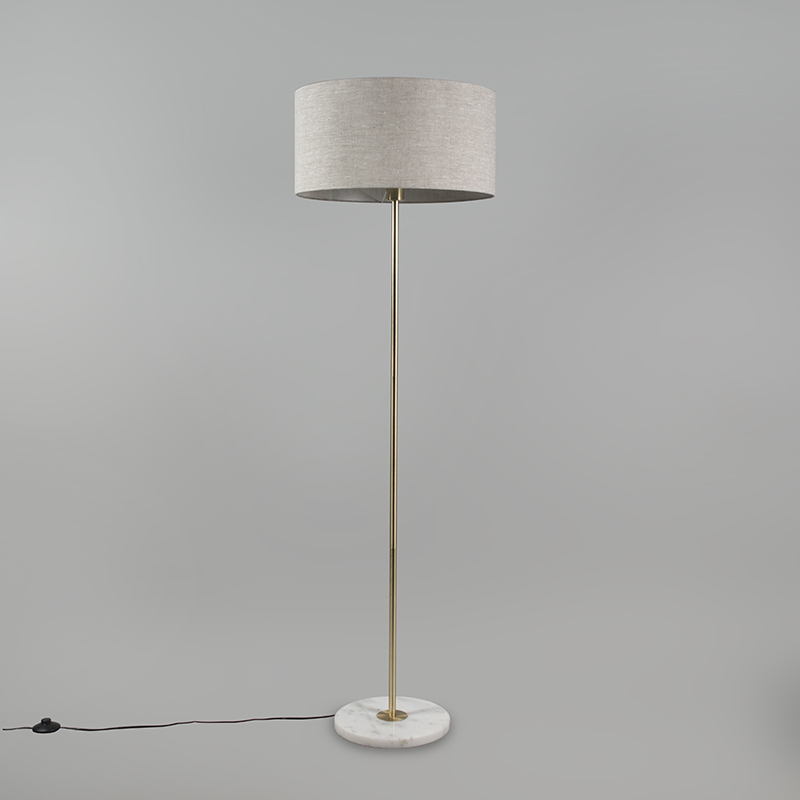 La combinaison de l’abat-jour gris clair, de l’or / laiton et du socle en marbre assure la tranquillité de votre pièce: un lampadaire décoratif pour le salon. L’abat-jour du lampadaire est remplaçable afin que vous puissiez déterminer quand il est temps de changer de look.