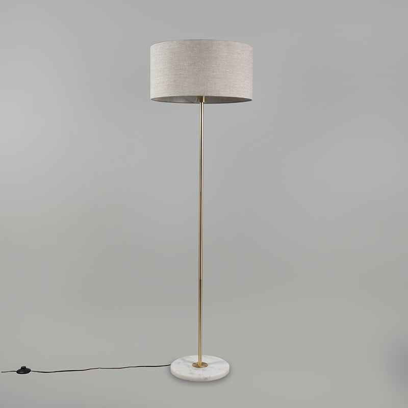 La combinaison de l’abat-jour gris clair, de l’or / laiton et du socle en marbre assure la tranquillité de votre pièce: un lampadaire décoratif pour le salon. L’abat-jour du lampadaire est remplaçable afin que vous puissiez déterminer quand il est temps de changer de look.
