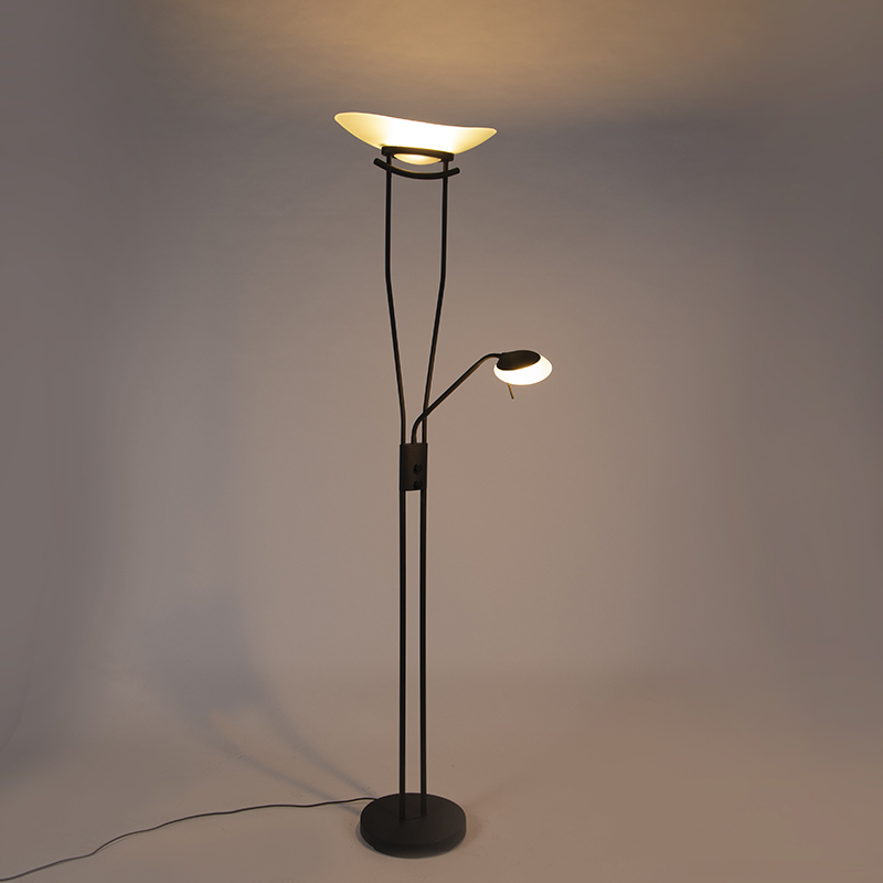 Le lampadaire LEXUS est un lampadaire élégant. La couleur noire en combinaison avec le verre blanc mat le rend très élégant. Le lampadaire est équipé d’un éclairage LED blanc chaud, ce qui le rend extrêmement économe en énergie (2700K et 1900 lumens). Cette lumière est également facilement dimmable par le gradateur sur le luminaire. Ce lampadaire est également équipé d’une deuxième ampoule sous la forme d’une lampe de lecture pratique, qui est entièrement réglable au moyen du bras flexible. Cette liseuse dispose également d’un module LED intégré.
