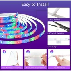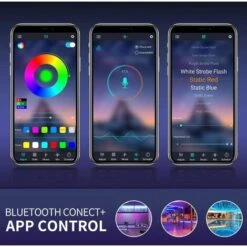 - Le ruban LED mesurent 15m de long en deux rouleaux. Il peut être contrôlé par l’application pour choisir 16 millions de couleurs, la musique et les fonctions de synchronisation du microphone