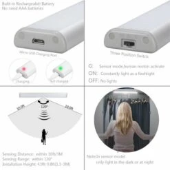 Fonction PIR détection de mouvement et activation des mouvements humains du crépuscule à l’aube, éclairage automatique marche / arrêt automatique, adapté à toute application d’éclairage domestique, éclairage de sécurité intelligent parfait, adapté aux armoires, couloirs, porches, casiers à vin, salles de bains et ceux qui besoin d’allée d’éclairage. br>