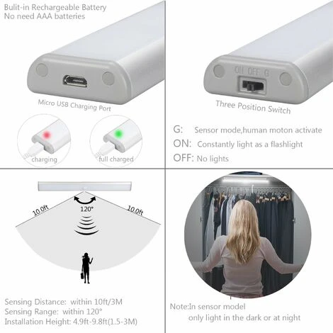 Comment cela marche-t-il? ? Il y a un interrupteur à trois positions: interrupteur sur « G »: il ne s’allumera automatiquement que lorsqu’un mouvement humain est détecté dans l’obscurité ou la nuit. Si un nouveau mouvement n’est pas détecté, la lumière automatique s’éteindra après 20 secondes. Pendant la journée, mettez-le sur « on »: toujours allumé, il peut également être utilisé comme lampe de poche ou comme éclairage de secours, mettez-le sur « off », pas de lumière;