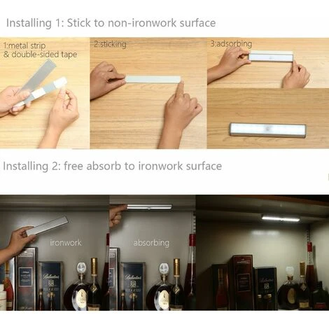 La coque en alliage d’aluminium, aimant intégré, peut facilement installer cette barre lumineuse de deux manières sans utiliser d’outils. Méthode 1: coller librement sur toute surface métallique, sans utiliser de ruban adhésif double face et de bandes métalliques, telles que les réfrigérateurs, les grilles de barbecue; toutes les surfaces non matérielles peuvent être nettoyées avec du ruban adhésif double face et du ruban métallique (inclus) pour fixer l’éclairage lumière.