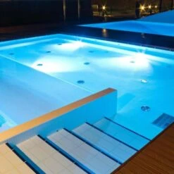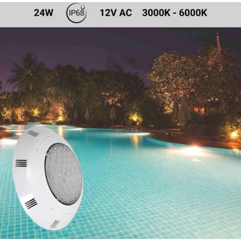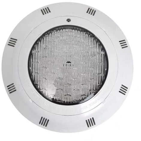 Spot LED pour piscine de saillie, protégé par un boîtier plastique étanche certifié IP68 pour une utilisation submergée en toute sécurité. Ses puces LED SMD2835 à haut rendement totalisent 24W de puissance et diffusent une lumière blanc froid 6500K.