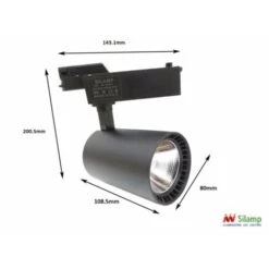 Caractéristiques du Spot LED sur Rail 20W 80° COB Monophasé NOIR
