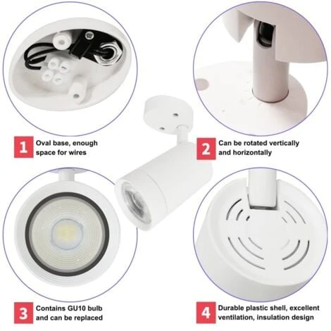 Spot orientable en plastique, finition noire ou blanche. ĂquipĂ© d’un culot pour ampoule GU10. L’ampoule n’est pas incluse avec le spot. Peut ĂȘtre installĂ© au mur ou au plafond. Avec un design moderne et un axe de rotation pour pouvoir orienter le spot LED dans n’importe quelle direction. L’angle du faisceau lumineux est de 36 degrĂ©s. IdĂ©al pour les magasins, les supermarchĂ©s, les vitrines, les centres commerciaux et tout endroit intĂ©rieur tel que, les salons, les chambres, les couloirs, etc. Dimensions: Ă58x93mm. Ce mini spot orientable est compatible avec toutes les ampoules GU10 Osram de notre catalogue.