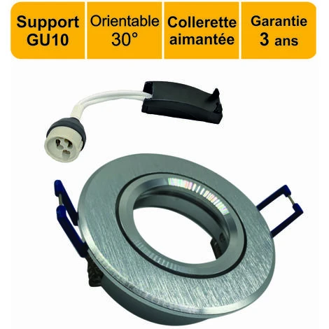 Ce support spot avec douille GU10 inclus vous permettra d’encastrer votre lampe dans le faux plafond et de l’orienter jusqu’à 30 degrés.