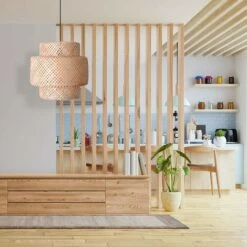 Le tissage des fibres d’osier permet une diffusion subtile et douce de la lumière, ce qui met en valeur les textures du matériau et crée une atmosphère agréable.Â